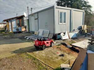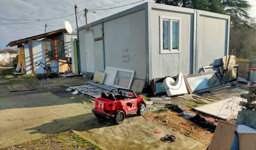 Nakon što su napustili naselje, objekti u kojima su živeli više od šest godina srušeni su bagerima. Kao alternativni smeštaj, porodicama su dodeljena dva prazna metalna kontejnera bez grejnih tela, a u jednom od njih električne instalacije ne rade. Kako se Inicijativa A 11 uverila danas na terenu, ovi kontejneri potpuno su nefunkcionalni i ispod su svakog prihvatljivog minimuma adekvatnog alternativnog smeštaja, što je i primoralo ove porodice da već sada traže smeštaj u kom će, pre svega, moći da zbrinu najmlađe. Zbog neuslovnosti ponuđenog smeštaja, pojedini članovi prinudno iseljenih porodica prethodnu noć su proveli na ulici.