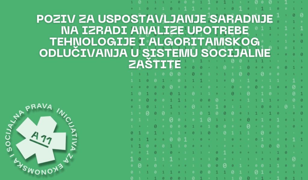 A 11 – Inicijativa za ekonomska i socijalna prava, uz pomoć Fonda za digitalnu slobodu (Digital Freedom Fund), sprovodi projekat „Strateška parnica protiv digitalnog nadzora nad socijalnom zaštitom u Srbiji”, s fokusom na izazove koje je doneo Zakon o socijalnoj karti i implementacija sistema Socijalna karta. Ovim projektom istražujemo sistem socijalne zaštite i upotrebu algoritamskih sistema koje predviđa zakon i analiziramo iskustva iz zemalja koje su se uspešno izborile sa upotrebom diskriminatornih tehnologija i algoritamskih sistema u javnoj upravi.